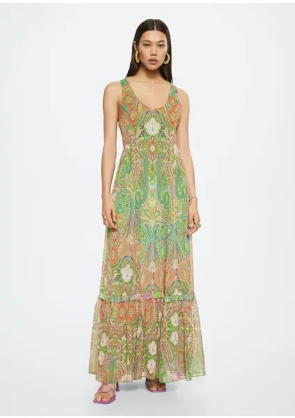 Mango Paisley Desenli Fiyonklu Elbise